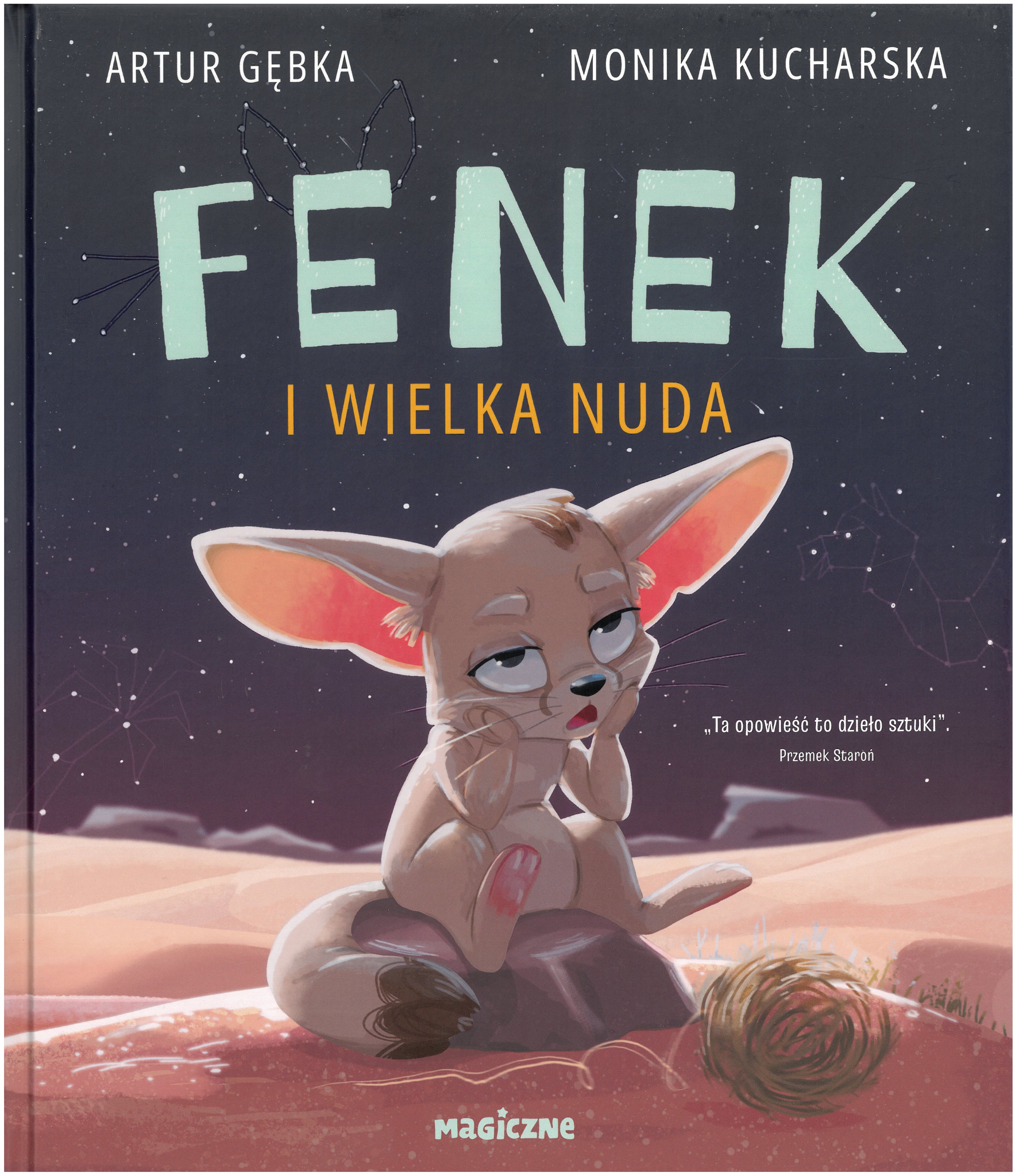 Czy przygoda czeka tuż za rogiem? Piasek, słońce, cisza… mały Fenek to wszystko już zna i bardzo się nudzi! Gdy jego rodzina smacznie śpi, ten postanawia wyruszyć na poszukiwanie prawdziwych przygód. Po drodze spotka niezwykłych mieszkańców pustyni, choć nie zawsze są to miłe spotkania. W trakcie podróży odkryje, że największe skarby kryją się tam, gdzie najmniej się ich spodziewamy. Ciepła i pełna uroku opowieść Artura Gębki o ciekawości, odkrywaniu świata i o tym, że czasem to, czego szukamy, mamy bliżej, niż myślimy. [Wydawca]